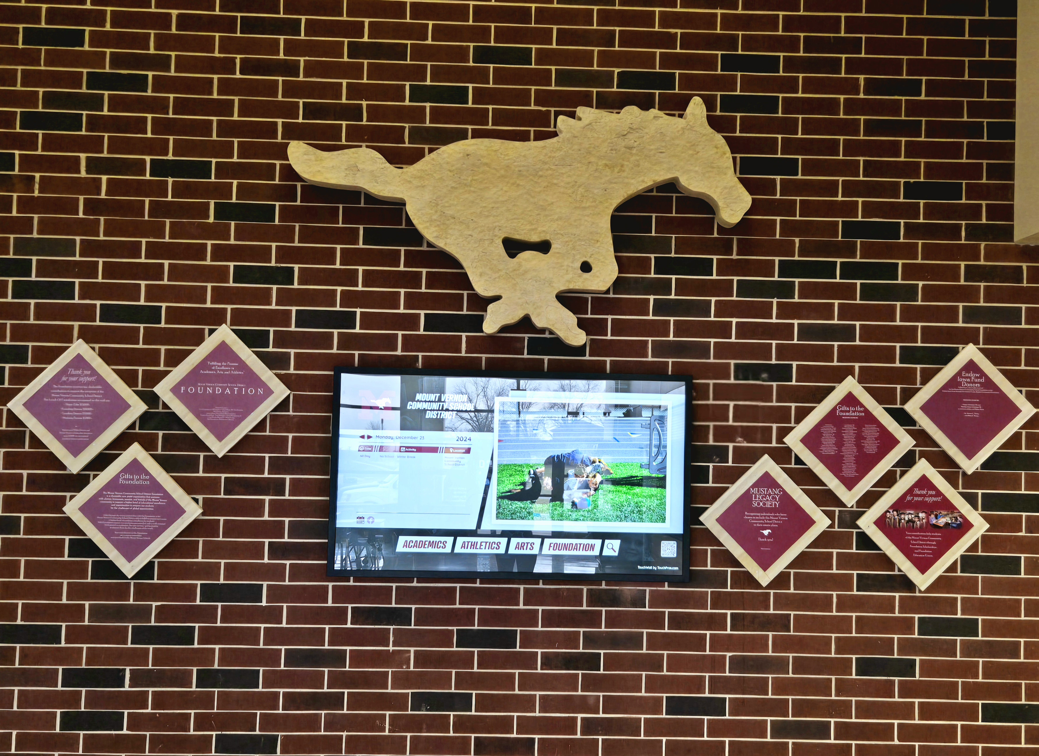 In 2025, the Foundation updated its Donor Wall in the High School to include a digital touch board. This board serves as the Hub for Mustang Nation information. Learn about current events, ways to support our district, celebrate our alumni, and more!